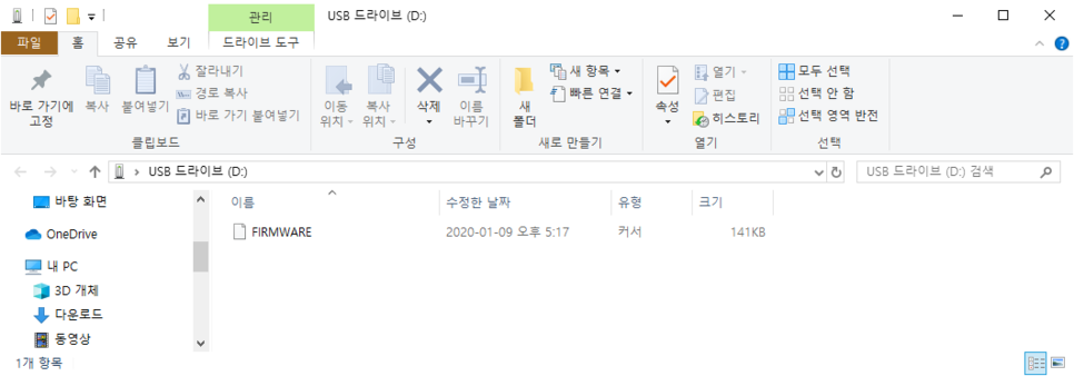 보드의 reset 버튼을 누르면 firmware.bin 이 FIRMWARE.CUR 로 변경되면서 펌업이 완료된다.