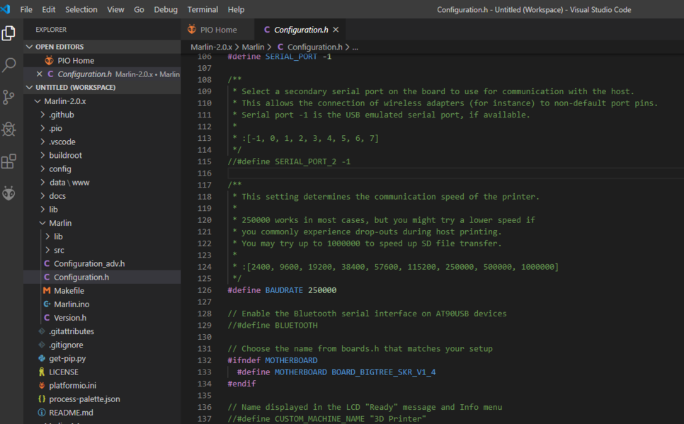 open project로 다운 받은 펌웨어를 로드한 다음 configuration.h 와 configuration_adv.h를 수정한다.