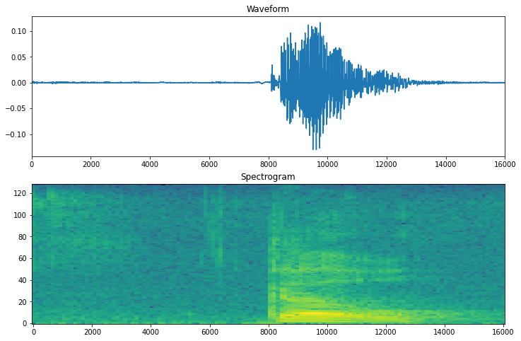 - 앞에서 정의한 get_waveform_and_label 을 사용하여 Dataset.from_tensor_slices 및 Dataset.map 으로 tf.data.Dataset 을 만듭니다.