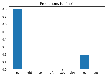plt.title(f'Predictions for "{commands[label[0]]}"')