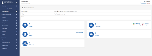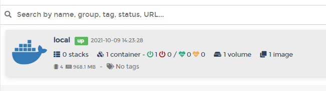 도커 상태를 확인할 수 있습니다. 컨테이너가 하나 생성되어있습니다. 포테이너 입니다.