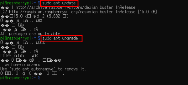 다음 명령어를 입력하여 라즈베리파이를 최신상태로 업데이트 합니다.