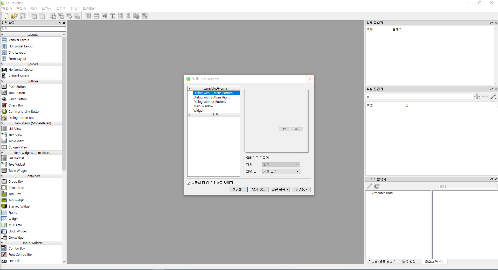 Qt Designer의 화면구성